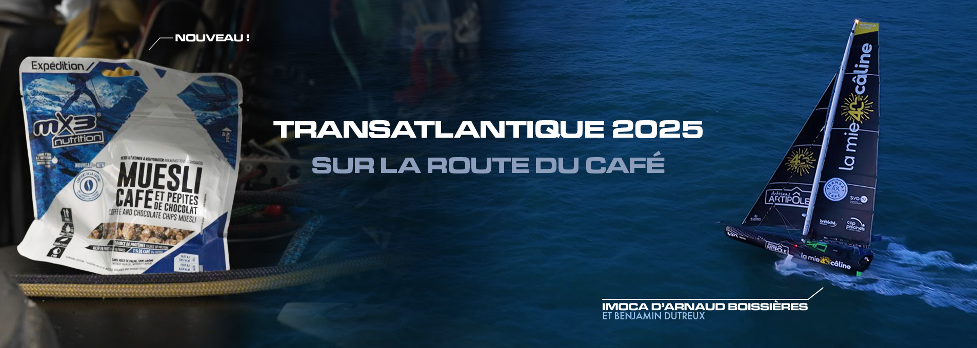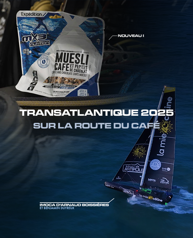 Née sur la côte Vendéenne dans les embruns de l’Atlantique, nous accompagnons depuis plus de 25 ans les navigateurs qui partent à la conquête de l’océan. Résolument innovante et en proximité avec les athlètes, la marque MX3® a depuis développé un savoir-faire unique en nutrition sportive en conjuguant science des aliments et un goût certain pour l’aventure.